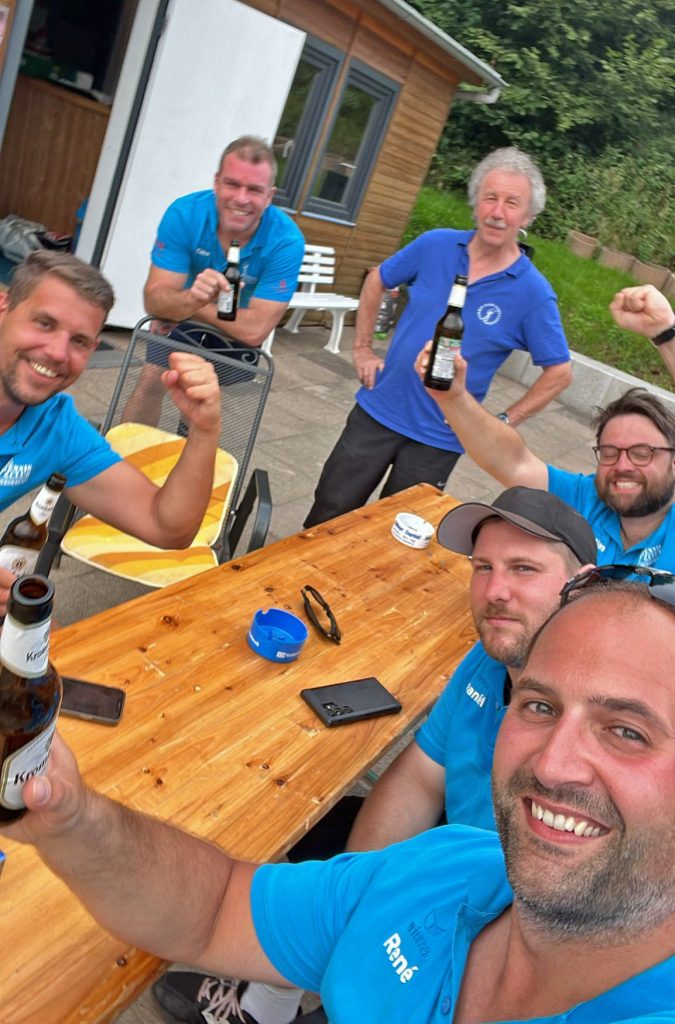 Unser Foto, ein Selfie von René, zeigen einige Mitglieder des Siegerteams bei der „feucht-fröhlichen Nachbesprechung“ sowie eine Tabelle mit dem Spielplan mit dem aktuellen Tabellenstand. Angesichts des schönen Erfolges war es dann auch nicht verwunderlich, dass sich der Spieltag für einige unserer Spieler bis in die Abenddämmerung hineinzog. Aber wie es so schön heißt: „Spontane Siegesfeiern sind immer die schönsten!“