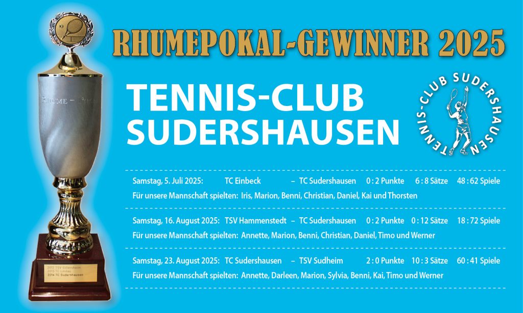 Unser Verein wurde am letzten Spieltag der Pokalrunde 2025 durch Annette, Darleen, Marion, Sylvia, Timo, Kai, Benni und Werner vertreten. Denn Auftakt machten wie üblich die Doppel der Damen und Herren, die weiteren vier Begegnungen wurde allesamt als Mixed ausgetragen. Es war die Hoffnung aller Sudershäuser Aktiven, dass sich unser Team bereits in der ersten Spielrunde einen kleinen Vorsprung herausspielen würde. Das gelang auch. Zwar musste unser Damen-Doppel Annette/Marion einen Satz abgeben, doch dank der mehr gewonnenen Spiele gab es für unser Team einen Bonuspunkt – der später vielleicht noch hätte wichtig werden können. Unser Herren-Doppel Kai und Timo entledigte sich seiner Aufgabe souverän, sie gewann beide Sätze mit 6:2 und 6:2. Damit lag unsere Mannschaft nach der ersten Spielrunde bereits mit 4:1 in Führung.