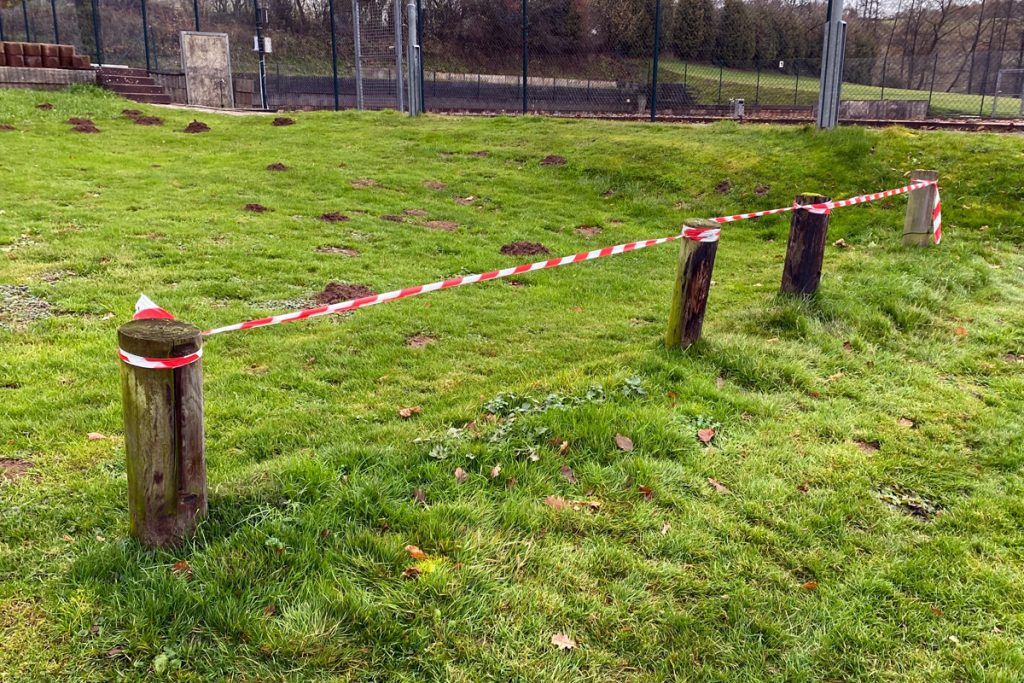Die vorbereitenden Arbeiten sind mittlerweile abgeschlossen, kürzlich wurden die Fahrradhalterungen abgenommen und wetterfest eingelagert. Zur Absicherung der „Baustelle“ wurden sicherheitshalber Trassierbänder angebracht (siehe Foto). Im Laufe des Winters werden die Halterungen gründlich gereinigt, damit sie nach dem Aufbau der neuen Pfosten unmittelbar wieder angebracht werden können.