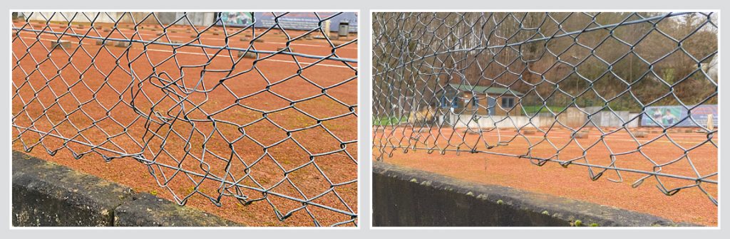 Der Austausch des Maschendrahtzauns, dessen finanzielles Gesamtvolumen mit rund 4500,- Euro veranschlagt ist, soll unbedingt vor dem Beginn unserer Freiluftsaison stattfinden. Denn die Arbeitsmaßnahmen am Zaun würden den Spielbetrieb auf den Tennisplätzen über mehrere Tage empfindlich stören. Andererseits muss die Maßnahme allerspätestens bis Ende Mai abgeschlossen sein, da unser Verein gegenüber den verschiedenen Stiftungen, die das Bauprojekt finanziell unterstützt haben, in der Pflicht sind, unsere Baumaßnahmen bis Ende Mai abzuschließen. Denn die Frist zum Abschluss der gesamten Baumaßnahme – im beantragten und genehmigten finanziellen Gesamtumfang – wurde lediglich bis zur Jahresmitte 2026 gewährt. Bis dahin muss eine vollständige Abrechnung des Bauprojekts in der beantragten Höhe vorgelegt werden. Andernfalls droht unserem Verein die Forderung nach der Rückzahlung eines Teils der ausgezahlten Fördermittel.