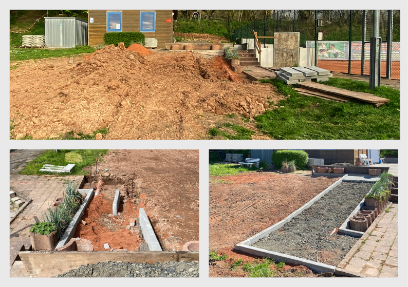 Das Projekt „Rampenauffahrt“ zur Terrasse nimmt Formen an: In wenigen Tagen wird es dank der neuen Auffahrt problemlos möglich sein, die Ballmaschine und andere Großgeräte schnell und sicher auf den Tennisplatz zu bringen.