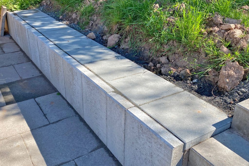 Neue Ablagefläche oder auch gern genutzte Sitzgelegenheit: Auch im restlichen Bereich des Übergangs von der Terrasse zur Böschung wurde durch das Einsetzen von Bodenplatten ein sauberer Übergang geschaffen.