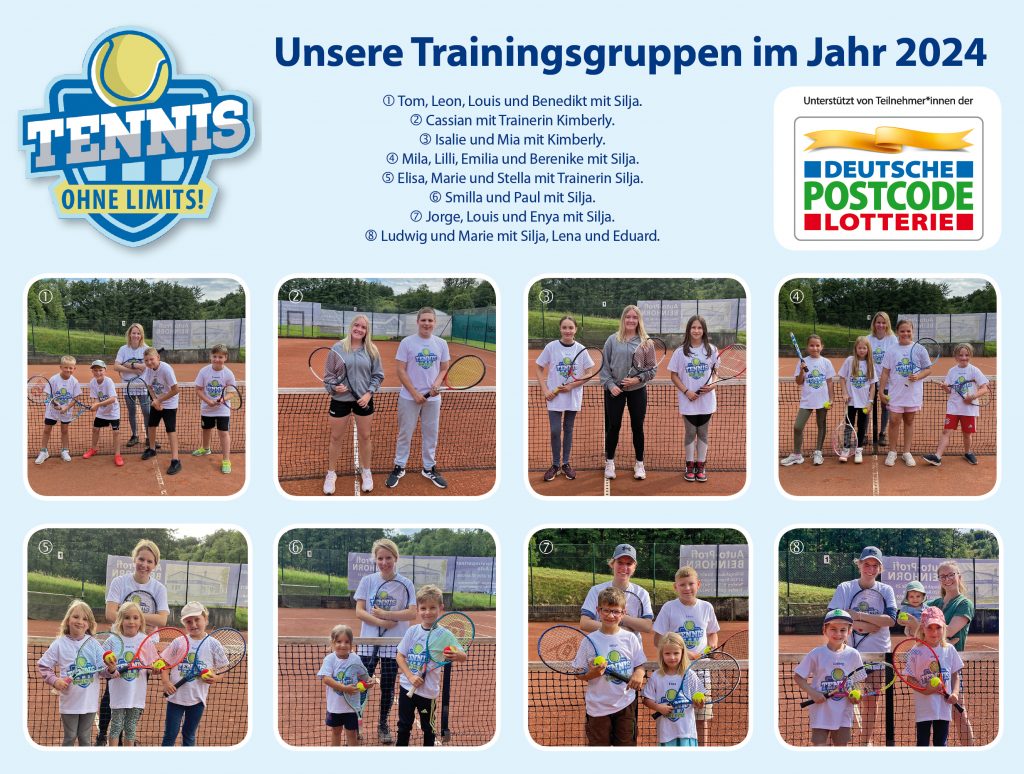 Ein möglicher Grund für die trotz Ferienzeit überaus gute Teilnahme am Tennistraining könnte natürlich der Umstand sein, dass die neuen Trainings-T-Shirts mit unserem Motto „Tennis ohne Limits“ an alle anwesenden Kinder und Jugendlichen ausgegeben wurden. Auch am nächsten Trainingstag wurden wieder einige der bei den Kids offensichtlich sehr beliebten T-Shirts ausgegeben, sodass jetzt nur noch wenige Shirts auf ihre Empfänger warten. Unsere nachfolgende, am 16. Juli aktualisierte Fotokollage zeigt den allergrößten Teil unserer Trainingsgruppen in ihrem neuen Outfit.
