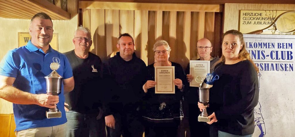 Im Verlauf der Versammlung konnten der Vorsitzende zusammen mit dem TC-Sportwart Steffen Rau mehrere Ehrungen für langjährige Mitgliedschaften und erfolgreiche sportliche Leistungen durchführen. Doris Gobrecht wurde für ihre 40-jährige Mitgliedschaft im Verein ausgezeichnet, währenddessen Werner Haffner auf eine 25-jährige Mitgliedschaft zurückblicken kann. Beide Jubilare erhielten vom Vereinsvorsitzenden die entsprechende Ehrenurkunde sowie ein persönlich gehaltenes Geschenk überreicht.