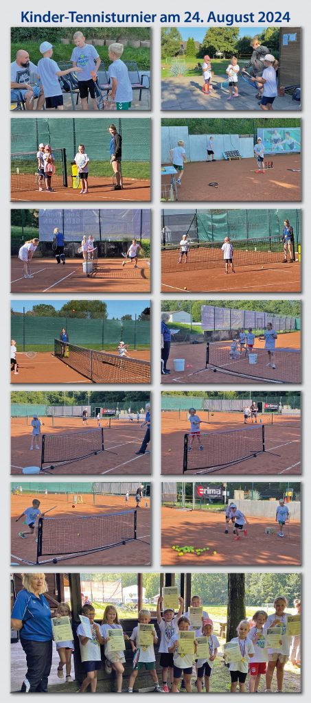 Am 24. August, fand in der Zeit von 9 bis 12 Uhr das diesjährige Kinder-Tennisturnier unseres Vereins statt. Die Entscheidung, das Turnier in die Vormittagsstunden zu verlegen, erwies sich als goldrichtig, denn zum Turnierende in den Mittagsstunden stiegen die Temperaturen merklich an.