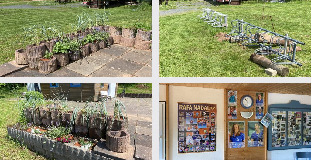 Insgesamt war ein großer Teil der Tätigkeiten an diesem Samstag eher „kosmetischer Natur“. Zum einem konnte nun endliche der zweite Fahrradständer an seinem angestammten Platz befestigt werden, sodass sie in einigen Tagen wieder zur allgemeinen Nutzung freigegeben werden können. Alle anderen Arbeiten, die an diesem Tage erledigt werden konnten, fielen eher unter das Thema „Verschönerungsarbeiten“. So wurde bereits am Freitagnachmittag damit begonnen, die freistehenden Blumenkübel wieder zu bepflanzen. Dadurch ist die Terrasse zur westlichen Seite hin nun deutlich – und optisch wirklich attraktiv – abgegrenzt. Weiterhin wurden immer wiederkehrende Aufgaben wie Rasen mähen, Unkraut jäten und andere Kleinarbeiten erledigt.